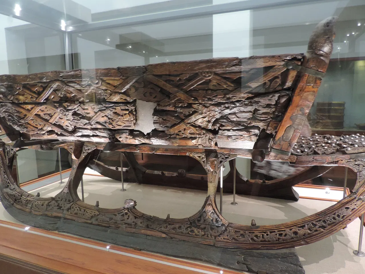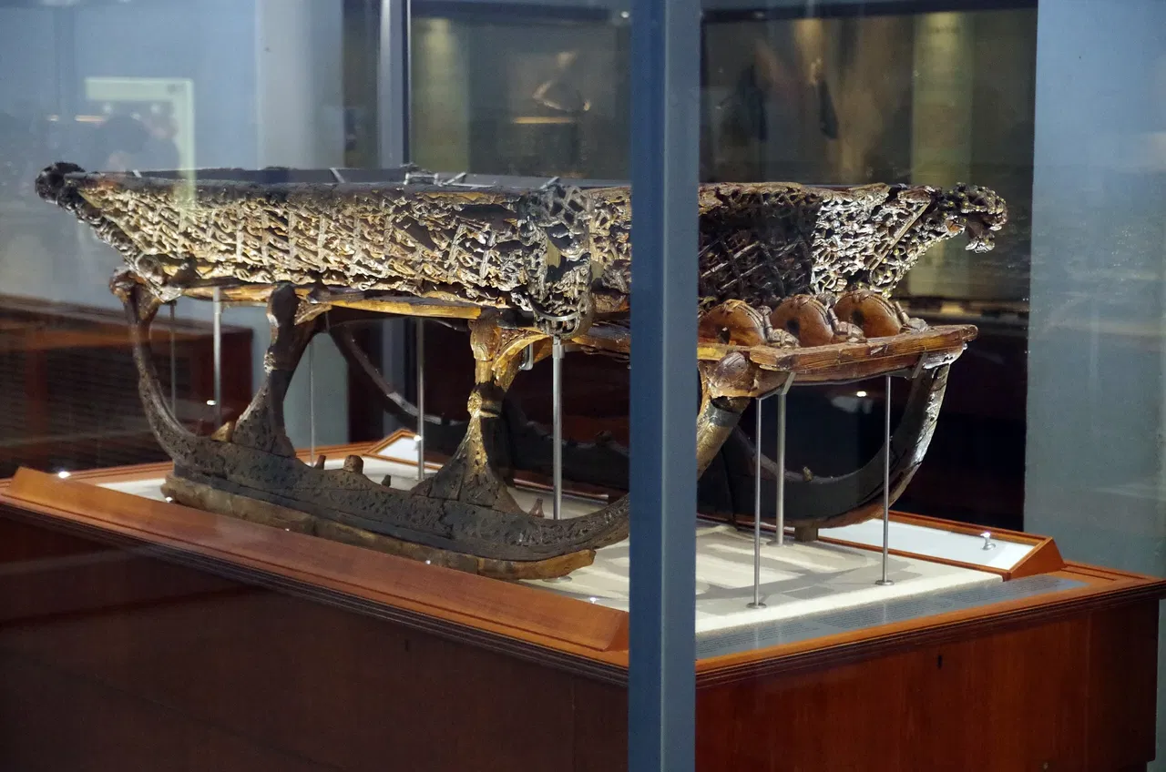 La mostra più famosa del museo è la nave Oseberg, completamente intatta, che è stata portata alla luce dalla più grande sepoltura di nave conosciuta al mondo. Questo straordinario manufatto offre una visione rara e dettagliata della costruzione delle navi vichinghe e delle pratiche di sepoltura.